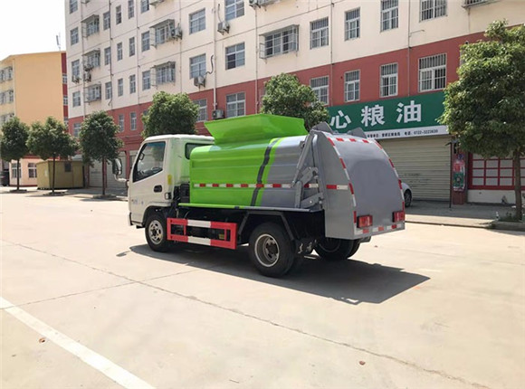 1.外觀造型美觀大方 垃圾箱橫向截面為方圓形、縱向截面為矩形框架,兩側(cè)為圓弧造型,整車顯得美觀大方。