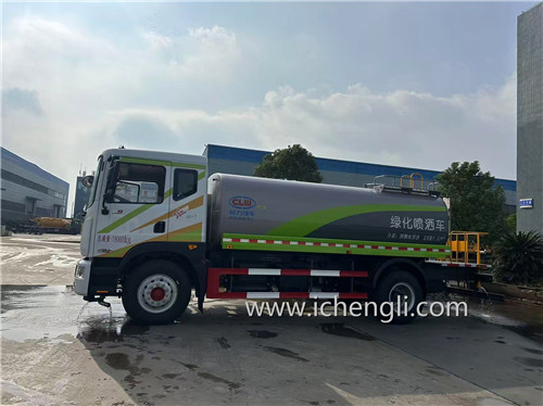 根據(jù)客戶要求:罐體容積約14.3立方。新款工藝流水線標(biāo)準(zhǔn)化生產(chǎn)灑水車,大氣,漂亮!專用功能為:前沖后灑,帶側(cè)噴,罐體后帶工作平臺(tái),平臺(tái)上安裝綠化灑水高炮,灑水炮可全方位旋轉(zhuǎn),并有多種雨?duì)羁烧{(diào)節(jié)(大雨、中雨、毛毛雨、霧狀),泵可自吸自排,帶自流閥,帶消防接頭,帶過(guò)濾裝置。車輛交付客戶特別滿意!感謝信任!