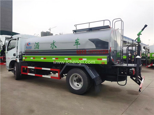 根據(jù)客戶要求:罐體容積約9立方。新款工藝流水線標(biāo)準(zhǔn)化生產(chǎn)灑水車,大氣,漂亮!專用功能為:前沖后灑,帶側(cè)噴,罐體后帶工作平臺(tái),平臺(tái)上安裝綠化灑水高炮,灑水炮可全方位旋轉(zhuǎn),并有多種雨?duì)羁烧{(diào)節(jié)(大雨、中雨、毛毛雨、霧狀),泵可自吸自排,帶自流閥,帶消防接頭,帶過(guò)濾裝置。根據(jù)客戶特殊要求加裝新款全自動(dòng)電子灑水炮,可在駕駛室內(nèi)操作電子炮旋轉(zhuǎn),方向和灑水狀態(tài),操作非常便捷。車輛交付客戶特別滿意!感謝信任!