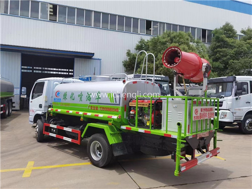 根據(jù)客戶要求:罐體容積約5立方。專用功能為:前沖后灑,帶側(cè)噴,罐體后帶工作平臺(tái),平臺(tái)上安裝綠化灑水高炮,灑水炮可全方位旋轉(zhuǎn),并有多種雨?duì)羁烧{(diào)節(jié)(大雨、中雨、毛毛雨、霧狀),泵可自吸自排,帶自流閥,帶消防接頭,帶過濾裝置。根據(jù)客戶特殊要求后平臺(tái)加裝全自動(dòng)柴油機(jī)霧炮噴霧機(jī)組,可做降塵實(shí)用,遙控操作。車輛交付客戶特別滿意!感謝信任!