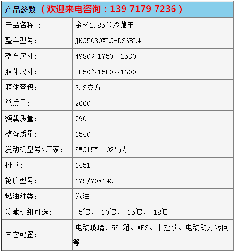 2.5米-3.5米冷藏車銷售熱線:13971797236
