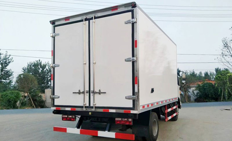七 廂體配置:我公司冷藏車廂體采用液壓吸附一體成型生產(chǎn)線制造,保溫性能達到國家A級標準。廂體內(nèi)面料采用最新款納米玻璃鋼(不吸光、隔熱性好、硬度強、抗氧化),保溫材料為8cm高密度聚氨酯保溫層,全密封樹脂膠粘接。廂體框架為防銹處理槽鋼支撐,廂體四周采用鋁合金型材包邊,不銹鋼包角。廂體內(nèi)部加裝LED夜間照明燈,四角加裝LED式寬度。配后雙開門(不銹鋼包邊、不銹鋼鎖件合頁),(側門選裝)尾部加裝防撞膠塊,采用三元乙丙橡膠密封條,3M反光膠板!