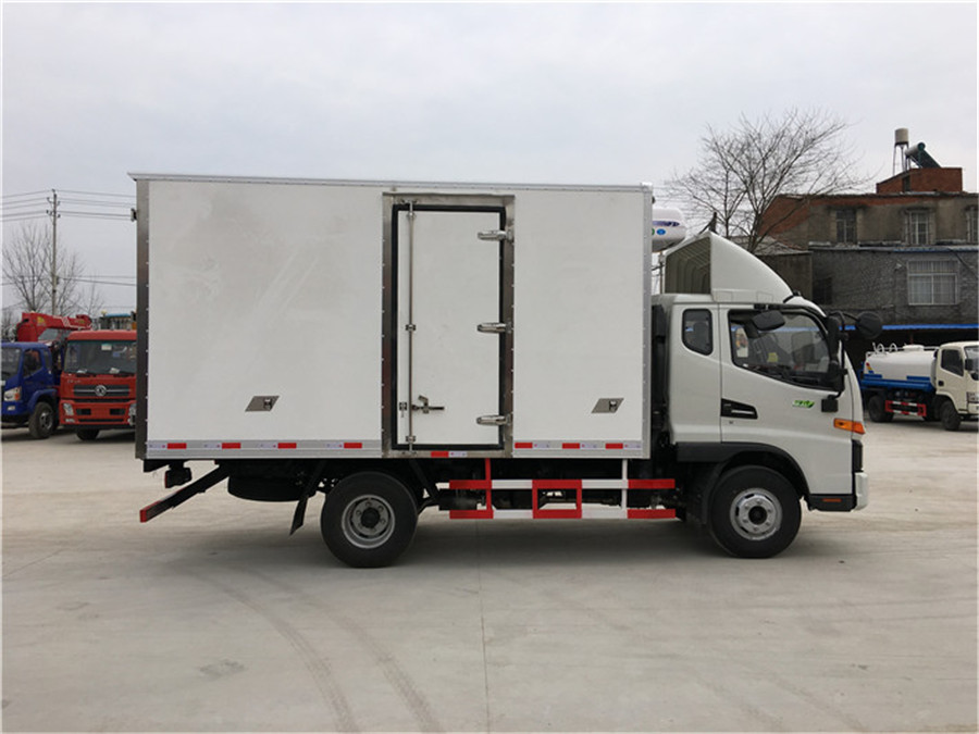 標(biāo)準(zhǔn):冷藏車由專用汽車底盤的行走部分,與隔熱保溫廂體(一般由聚氨酯材料,玻璃鋼組成、彩鋼板、不銹鋼等),制冷機(jī)組,車廂內(nèi)溫度記錄儀等部件組成,對于特殊要求的車輛,如肉鉤車,可加裝肉鉤,攔貨槽,鋁合金導(dǎo)軌,通風(fēng)槽等選裝件。