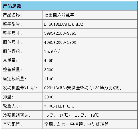 四、 廂體配置:我公司廂式冷藏車工藝采用專用模具壓制成型,保溫性能達到國家A級標準,保溫材料為無縫隙填充聚氨酯發(fā)泡,廂體內外采用高強度玻璃鋼板材質,樹脂膠無縫連接,后配全密封雙開門,不銹鋼門框包邊,不銹鋼合頁和鎖件,廂體內部加裝LED夜間照明燈。