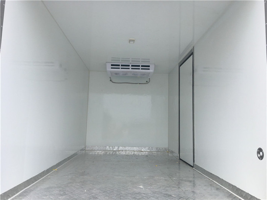 七 廂體配置:我公司冷藏車廂體采用液壓吸附一體成型生產(chǎn)線制造,保溫性能達到國家A級標準。廂體內(nèi)面料采用最新款納米玻璃鋼(不吸光、隔熱性好、硬度強、抗氧化),保溫材料為8cm高密度聚氨酯保溫層,全密封樹脂膠粘接。廂體框架為防銹處理槽鋼支撐,廂體四周采用鋁合金型材包邊,不銹鋼包角。廂體內(nèi)部加裝LED夜間照明燈,四角加裝LED式寬度。配后雙開門(不銹鋼包邊、不銹鋼鎖件合頁),(側(cè)門選裝)尾部加裝防撞膠塊,采用三元乙丙橡膠密封條,3M反光膠板!