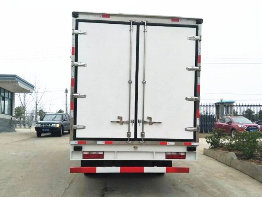 九 選裝配置:可選裝廂體側門(單側門或雙開門),可選裝鋁合金導風槽(導風槽有助于冷氣循環,提升制冷效果),可選裝廂體頂部加固肉勾滑道(直滑道 或 對接互通式拐彎滑道)。可選裝廂體內部采用全面不銹鋼材質(海鮮運輸必須加裝,海水有腐蝕性),可選裝280V-380V外接電源(停車熄火后可插電冷機繼續制冷工作),可選裝溫濕度監控記錄儀(帶打印功能)。