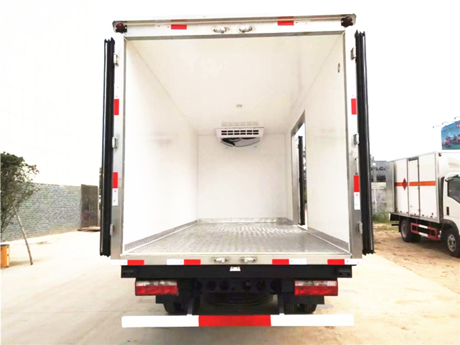 九 選裝配置:可選裝廂體側門(單側門或雙開門),可選裝鋁合金導風槽(導風槽有助于冷氣循環,提升制冷效果),可選裝廂體頂部加固肉勾滑道(直滑道 或 對接互通式拐彎滑道)??蛇x裝廂體內部采用全面不銹鋼材質(海鮮運輸必須加裝,海水有腐蝕性),可選裝280V-380V外接電源(停車熄火后可插電冷機繼續制冷工作),可選裝溫濕度監控記錄儀(帶打印功能)。