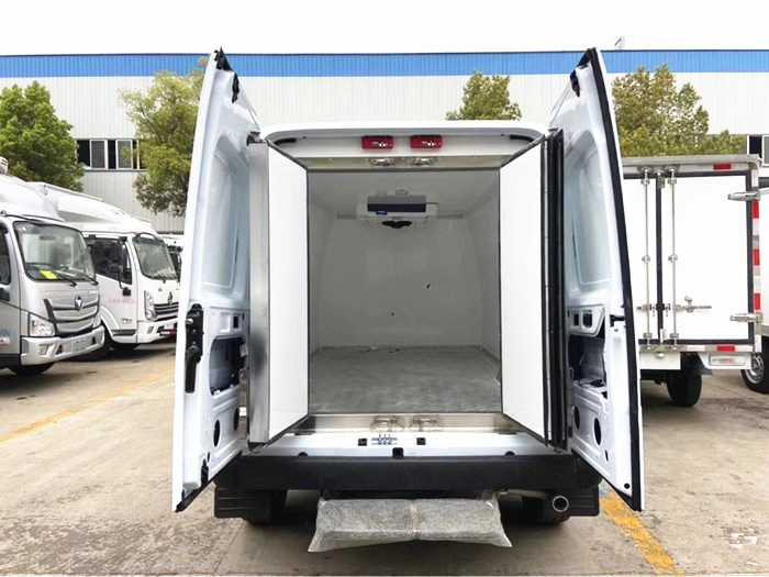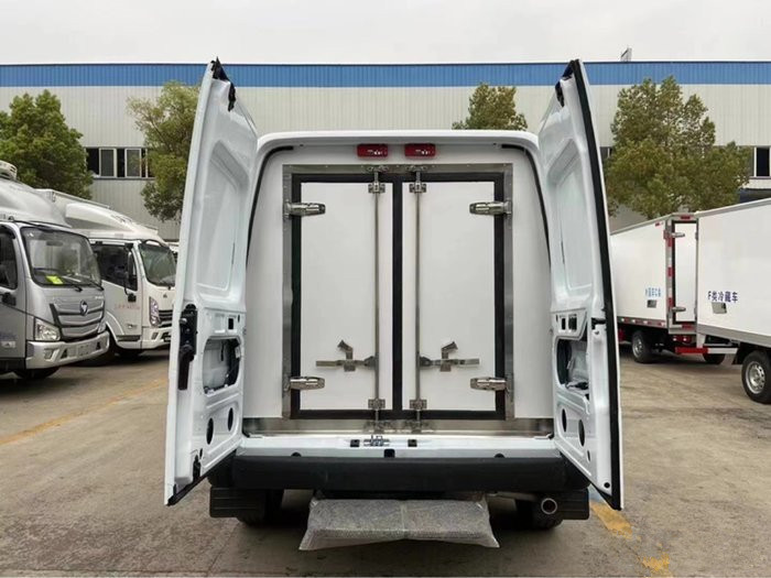 四、 廂體配置:我公司面包式冷藏車工藝采用專用模具壓制成型,保溫性能達到國家A級標準,保溫材料為無縫隙填充聚氨酯發泡,廂體內外采用高強度玻璃鋼板材質,樹脂膠無縫連接,后配全密封雙開門,不銹鋼門框包邊,不銹鋼合頁和鎖件,廂體內部加裝LED夜間照明燈。