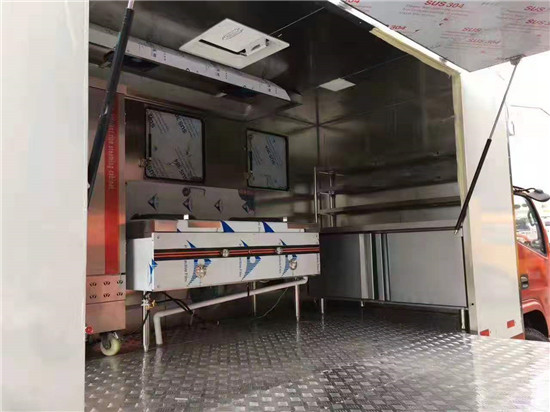 紅白喜事流動餐車,以下是基本配置資料,廂體材質:采用冷藏車生產工藝,采用雙層隔熱保溫阻燃廂體,外墻板是優質玻璃鋼,保溫層是隔熱巖棉,內墻板是不銹鋼。廂體內設備也均采用不銹鋼,方便清洗,廂體上下水合理設計,操作完清洗也方便。