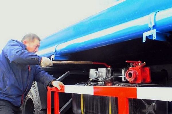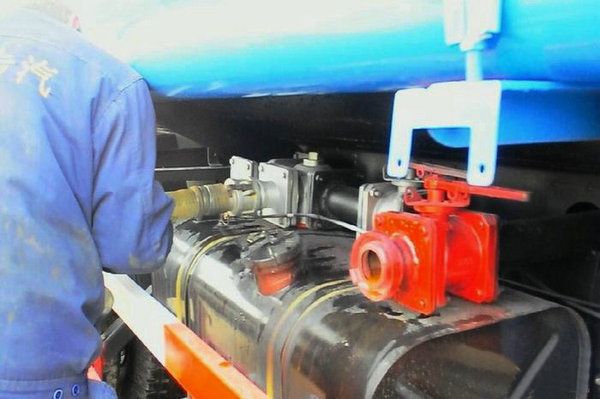 其次找到四通閥,通過手柄將閥門推至與地面垂直,打開進水口;再至駕駛室將變速箱掛入空檔,啟動發動機,松離合,將取力器開關向后拉,掛入檔位。、自吸式灑水泵開始工作,開始進行吸水作業。