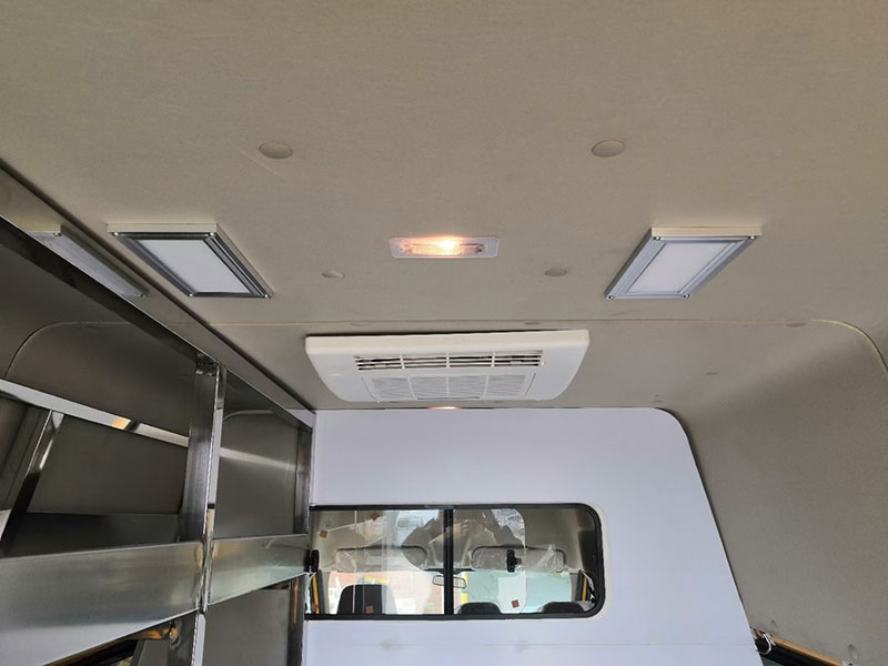 V348工業氣防車5-9人座搶險車上裝配置:加密雜棉為5mm厚,設備柜內鋪設減震,下降行駛過程中,設備的磨損。整車側方設一個開放式物品傳遞窗口,可直接傳遞物品,下降開車門次數。安裝靈活,標志燈安裝位置可自由選取?;y鋁地板3mm厚,防滑,易清理,選取壽命長。艙體左側折疊椅的右側設有器材骨架Ⅰ,該器材骨架Ⅰ設有盛放發電機的機艙和多個置物艙。