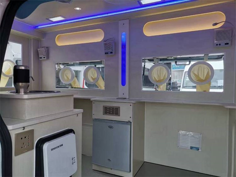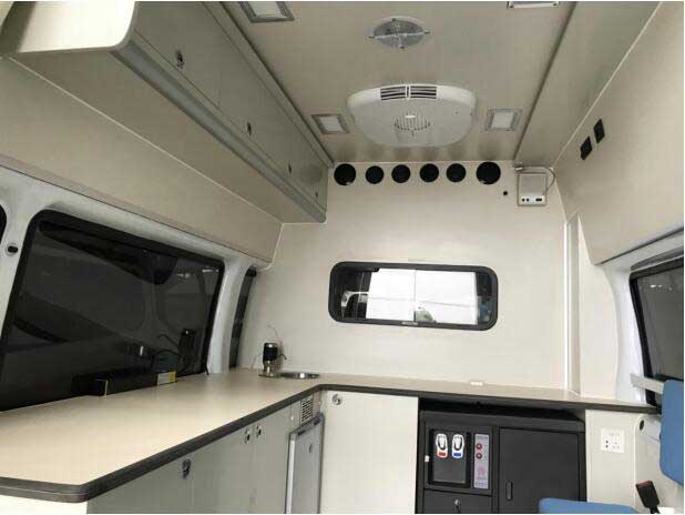 福特新時代全順V348流行病學多功能檢測車,檢測艙配備 1kg 干粉滅火器,遇突發火災可緊急滅火。車內安裝了手持對講機系統,12V,輕易工作人員溝通。改裝原材料使用適合相關標準并通過“CCC”質量認證的材料。帶充電功能的逆變系統,純正弦波2000W。獨立電源中央控制系統,采用利于,用電安全。配GPS 導航一體機、 監控系統。頂部照明燈,后照明燈使用LED式,節能環保,減少整車運行成本。車外螺釘、 螺母、墊片等緊固件優先選用不銹鋼,防腐防銹。