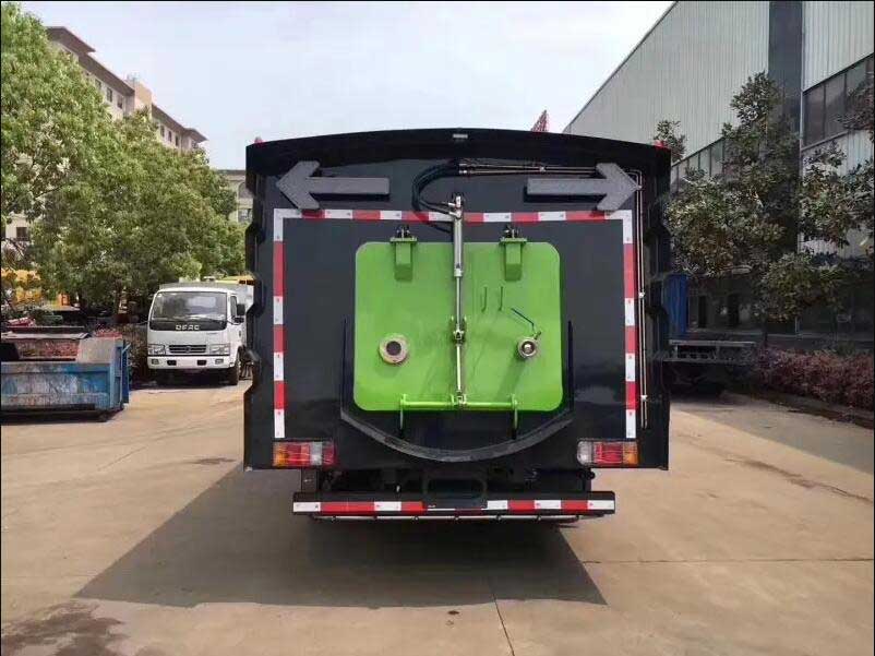 五十鈴8方洗掃車,能夠隨垃圾箱體舉升的動力倉罩可使動力系統的維修保養極為便利。后輪前設有強磁力吸附總成(磁力吸附器),能有效吸附鐵釘等尖銳黑色金屬物,防止作業過程中扎輪胎。洗掃車作業時先用邊刷將道牙處的垃圾向中間集中,再用高壓水進行清洗,然后由吸口將污水及垃圾吸到污水箱中。具有技術先進的高壓水路控制系統,當高壓水泵起動及工作水閥切換時,水泵能自動卸荷。