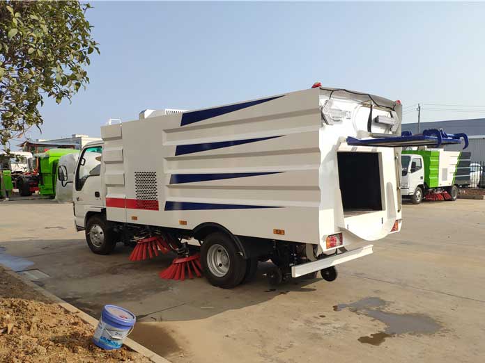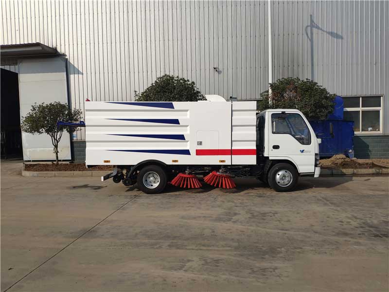 五十鈴5.5方掃路車實拍圖_車型資料廠價直銷廠家直供,掃路車的工作效率比人工要高相當多,大概有6-40倍。降少灰塵,降少環境污染。經濟回報,以一輛青羊清掃車為例,它停止選用的那天共花費了多少錢,才是它真正的價錢。除了投資成本外,還有運營成本和人力消費成本。液壓管路選擇德國標準技術密封結構形式,抗震動性好,密封靠得住性高,可實現無泄露的密封效果,避免二次污染。風機和可隨路面自動找平地全浮動式吸嘴都是采取先進的工藝,讓清掃效果更好,選擇壽命更長。