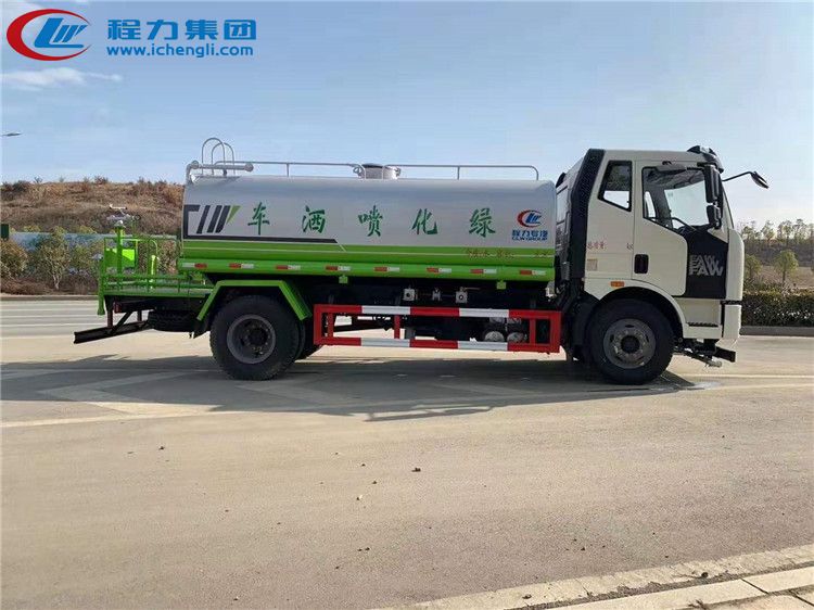 一汽解放國六灑水車是一款采用國六排放標(biāo)準(zhǔn)一汽解放J6L底盤改裝的環(huán)衛(wèi)車(北京環(huán)保可上京牌),該車罐體容積:13立方米,標(biāo)配前沖、后灑、側(cè)噴、后平臺高炮,是園林綠化、小區(qū)物業(yè)、公路養(yǎng)護的常用車型。