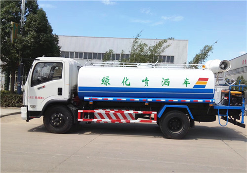 上裝配置:罐體容積為8-10立方灑水車,罐體鋼板為4mm碳鋼Q235材質(zhì),罐內(nèi)隔板具有防波作用,以減輕汽車行駛時罐體液體沖擊,罐體及整車外形尺寸按照公告。帶大功率專用灑水泵,泵可自吸自排,整車前沖、后灑、側(cè)噴、帶65消防接口,后平臺帶綠化灑水炮,灑水炮可全方位旋轉(zhuǎn),可連續(xù)調(diào)成直沖狀、大雨、小雨、毛毛雨;前封頭帶水位計,后平臺主管路帶1寸澆花接口,后爬梯。平臺后部帶小安全告知牌:“隨時停車,注意安全”,帶兩根水管及陰陽端。罐體顏色:上白/下藍,銀灰/銀藍,罐體兩側(cè)噴“灑水車、綠化噴灑車”字樣,貼反光標示。灑水車可加裝前沖后灑氣動閥駕駛室控制、可加裝霧炮機組發(fā)電機組噴霧降塵裝置、車頭可加裝推雪雪鏟、雪滾裝置街道、公路除雪等。