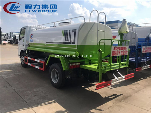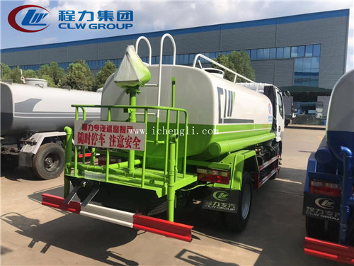 上裝配置:罐體實際容積5立方,前沖后灑側噴,帶后工作平臺,管道加粗,流量大,平臺上裝綠化灑水高炮,射程可達:25-30米。