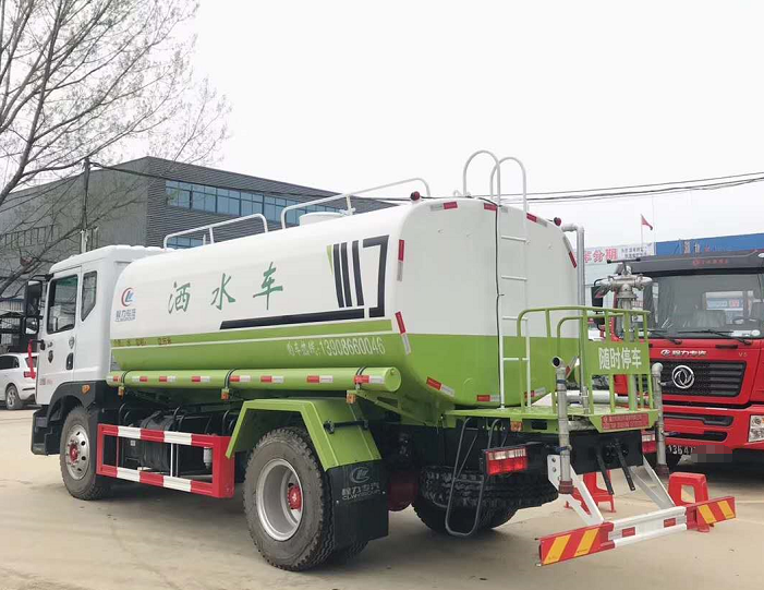 這款程力公司出產的東風D9大多利卡多功能綠化灑水車,灑水車采用了東風公司的正宗原裝底盤,東風康明斯210馬力發動機,六缸機,國六排放;帶空調和方向助力,車頭前配置前沖,后灑,側噴,高位花灑,后平臺帶綠化灑水車炮,罐體采用4mm武鋼優質碳鋼制作,裝水13.6噸-14.6噸;罐體后帶工作平臺,平臺上安裝綠化灑水高炮,炮可噴灑農藥,并有多種雨狀可調節(大雨中雨毛毛雨霧狀),泵可自吸自排,帶自流閥,帶消防接頭,帶過濾裝置。