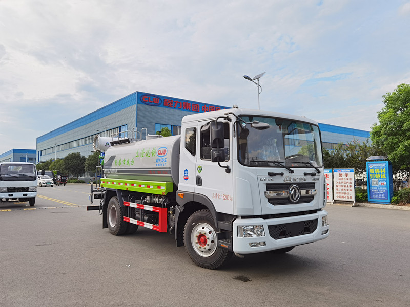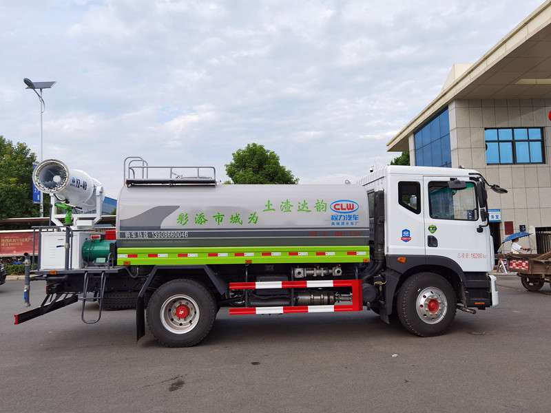 罐體實(shí)際容積:15立方,新款工藝罐體,灑水車罐體鋼板采用4mm碳鋼Q235材質(zhì)一次成型,大口徑直通球閥,鋁合金三通,整車螺栓鉚接,無焊接;罐內(nèi)隔板具有防波作用,以減輕汽車行駛時(shí)罐體液體沖擊,配大功率專用灑水泵,泵可自吸自排,整車前沖、后灑、側(cè)噴、帶65消防接口,帶自流閥,帶過濾裝置;后平臺(tái)帶綠化灑水炮,灑水炮可全方位旋轉(zhuǎn),可連續(xù)調(diào)成直沖狀、大雨、小雨、毛毛雨;前封頭帶水位計(jì),后平臺(tái)主管路帶1寸澆花接口;尾部帶安全告知牌:“隨時(shí)停車,注意安全”,帶兩根抽水管及陰陽端;罐體兩側(cè)噴“綠化噴灑水車”字樣,罐體顏色:深灰/綠;后平臺(tái)配CLW-40型全自動(dòng)柴油霧炮機(jī)組,霧化有效射程40米,水冷發(fā)電機(jī),全自動(dòng)遙控控制;其他標(biāo)配。