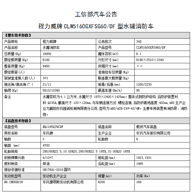 標(biāo)準(zhǔn):東風(fēng)D9水罐消防車是由二類汽車底盤、水罐、消防水泵、管路、儀表電路系統(tǒng)等部件組成,該車裝配鋁合金后爬梯(可拆卸),泵房在整車尾部,罐體為鋼板焊接式,罐體材質(zhì)為優(yōu)質(zhì)碳鋼板,罐體內(nèi)部做防腐處理,載水6立方。該車裝備CB10/40消防泵,PS40消防炮。