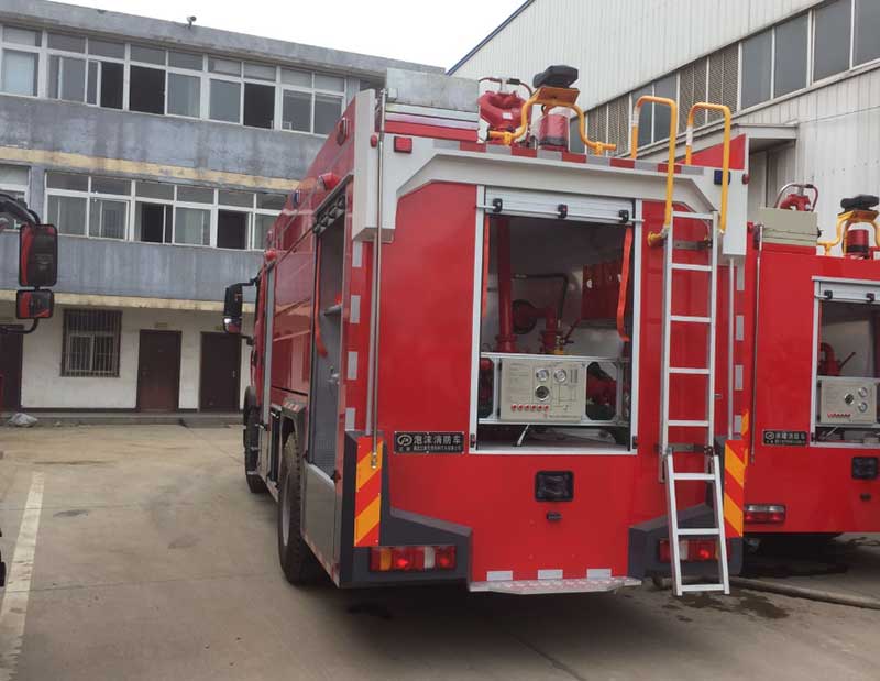 豪沃T5G8噸水罐消防車,為了更精準對準著火點滅火,箱體配備有爬梯,消防員能夠借助爬梯登上箱體操作消防水炮。具有動力強勁、環(huán)保節(jié)能、扎實耐用、機動性強、射程遠等突出優(yōu)勢和特點。消防管路全部應用大口徑鋁合金材質,管路壓力損失小。器材支架采取歐洲技術生產(chǎn)的鋁合金型材,內藏式塔接制造,全內六角連接結構,精美耐用。罐體采用優(yōu)質碳鋼材料,內框架焊接,設置縱、橫防蕩板,溶液分區(qū)存放。