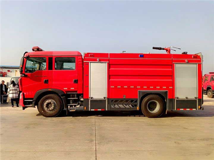 豪沃T5G8噸泡沫消防車,車身兩側安裝有翻轉踏板,防滑設計,利于上下。器材箱室內根據需求設儲物盒。駕乘室后部設置的器材箱安裝有鋁合金卷簾門,內設有照明,物品拿取便于。車輛由消防員乘員室和整車兩大部分組成。