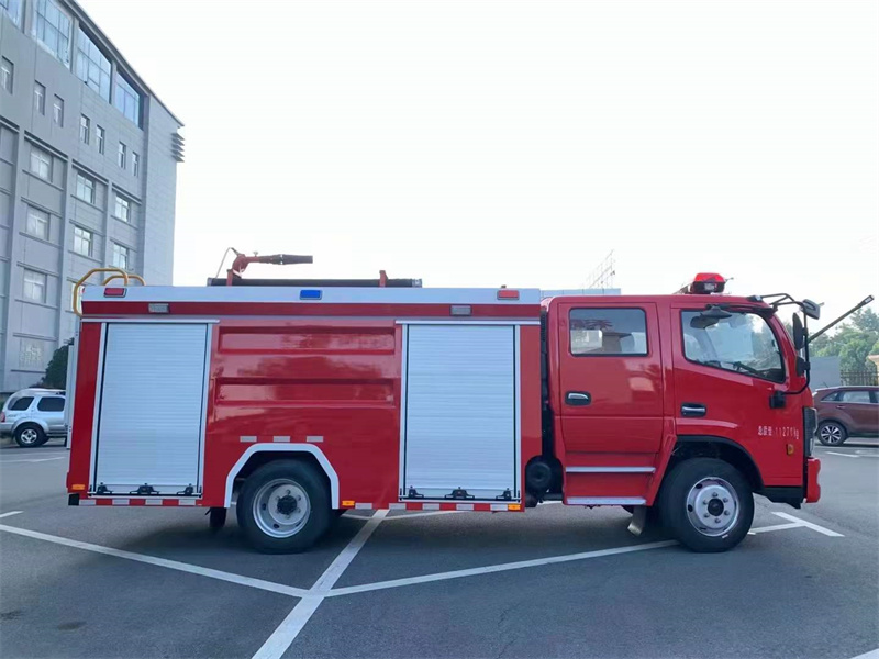 東風多利卡D7_4.5噸泡沫消防車,消防炮射程: ≥55 m(水),≥42 m(泡沫)。頂板3mm碳鋼花紋板。消防炮額定流量: 24L/s@0.8MPa。消防泵最大吸深: 7m。消防泵安裝形式: 后置式。載水 3.0 方。
