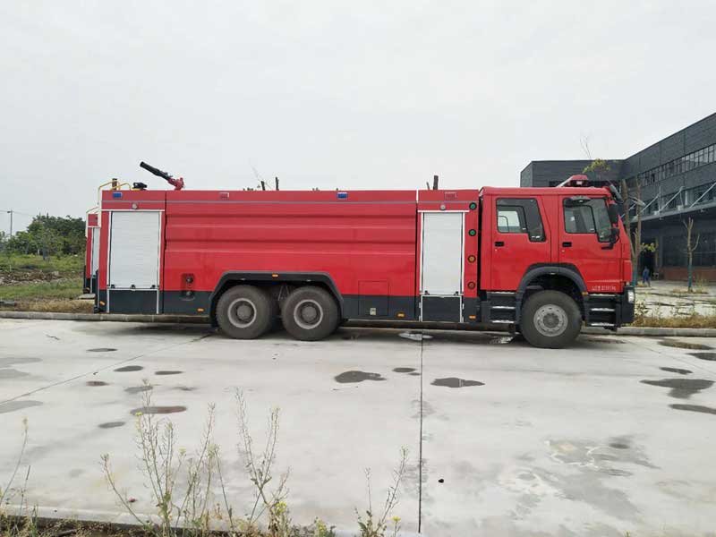 16噸泡沫消防車_重汽豪沃后雙橋泡沫消防車配置齊全,泡沫消防車是城市專業消防隊必備的全車,也是如今主流的作戰消防車。裝載水和消防泡沫液,經過混合后,就是優秀的滅火載體。是石油化工企業常備的消防車。隨著我國社會經濟建設的快速發展,高層建筑越來越多,大型石化企業不斷涌現,對泡沫消防車提出了更高的需求。既可以向火場供水和泡沫混合液,也可以獨立撲救火災,多用于撲救油類火災。