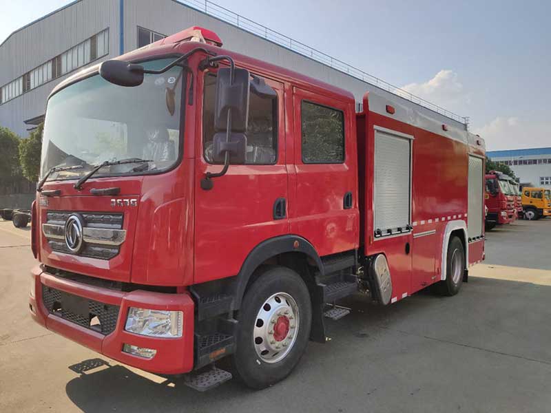 7噸泡沫消防車_東風多利卡D9雙排泡沫消防車底盤配置:平頭、原裝雙排座四開門乘員室,前排2人后排4人。取力器與發動機匹配極好,精確安裝,結合后無自行脫落現象。不規則組合式大燈,最外側是LED日間行車燈,牢靠性更高,使其在同級產品中脫穎而出。整車設計新穎,外形漂亮,整體性能好。