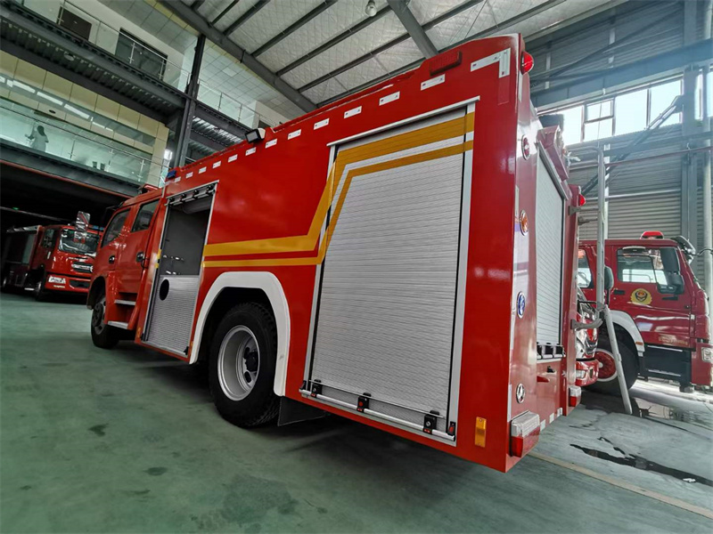 5方水罐消防車_東風凱普特K7水罐消防車,車身顏色為消防車通用消防紅,油漆采用工藝,運用轎車油漆處理技術,增強油漆附著力、均勻性,耐用性;我廠具有國內的烘干設備,嚴格做到工作時防塵,無污染。強大動力,節能環保,人性設計,布局合理,取用方便。罐體形式為內藏式,材料使用優質碳鋼(Q235A),板材厚度3 mm。消防系統使用電、氣動控制,操作簡捷,消防炮150m無線遙控。為了更精準對準著火點滅火,爬梯可以輔助消防員上到箱體頂部操作消防水炮。