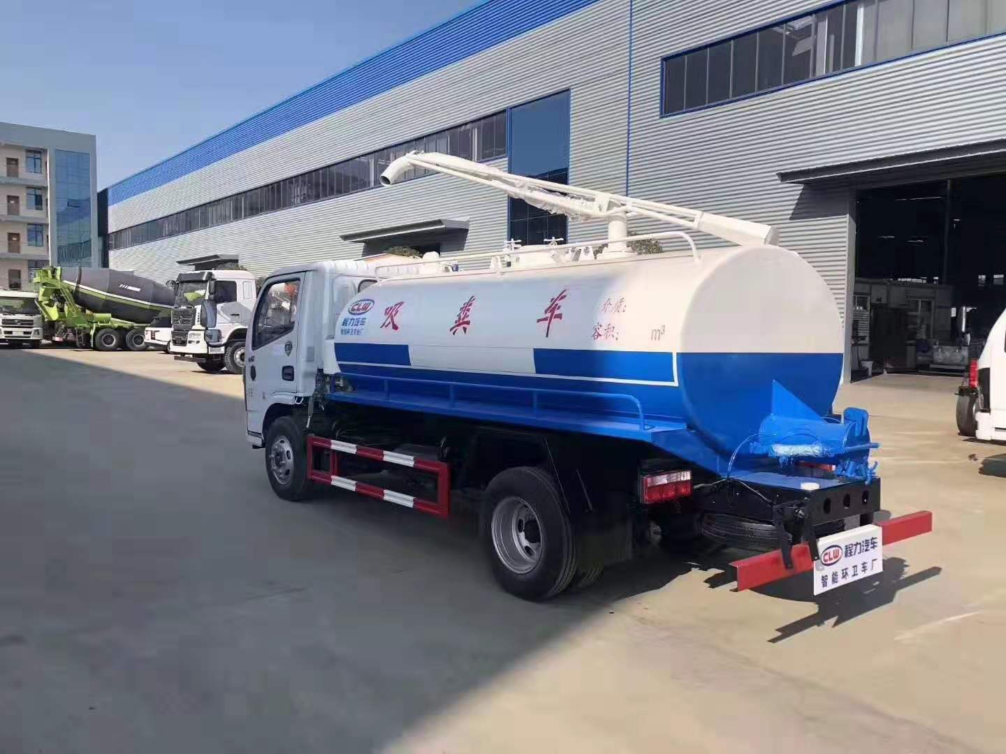 上裝配置:罐體實際容積5.4立方,專用部分由取力器、傳動軸、真空吸糞泵、水氣分離器、油氣分離器、多路換向閥、吊桿、糞罐、放糞閥、清水箱、視糞窗、真空壓力表、管網系統等組成。