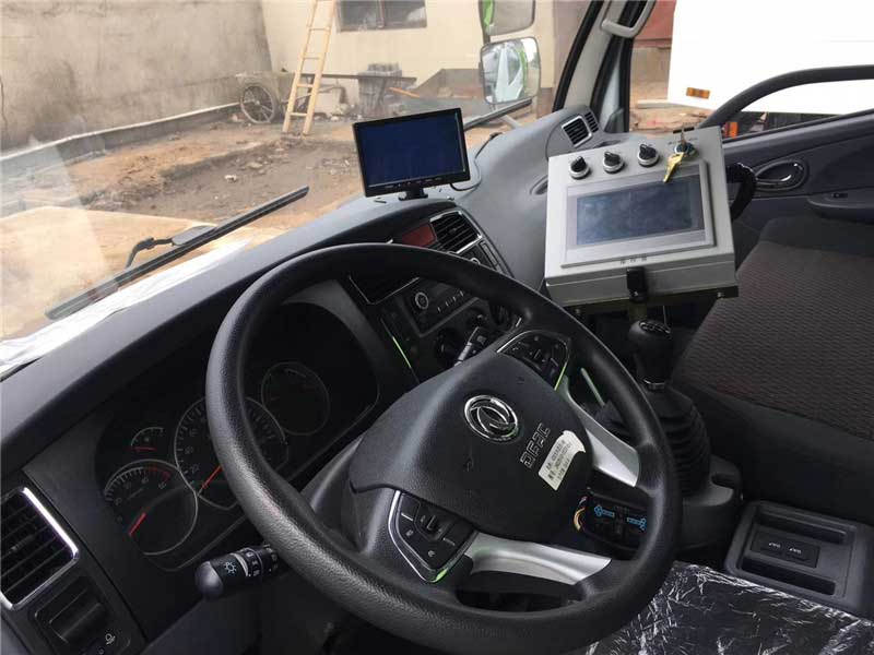 多利卡D7_9方洗掃車上裝配置:選用中置2掃盤。水箱5方,垃圾箱4方。室內監視倒車和洗掃轉臺。