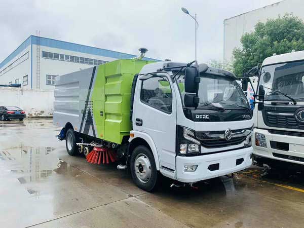 東風多利卡D7_9方洗掃車,康明斯副發動機。洗掃轉臺室內有監視器。垃圾箱帶防溢報警裝置。掃盤具有自動避障和自動復位功能,遇障時自動收回,自動回位。能夠根據各類清掃工況對掃盤轉速進行調節。液壓驅動電氣能夠自動控制吸嘴的升降。