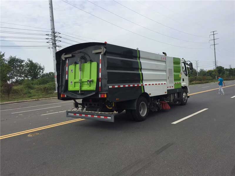 16方洗掃車_東風柳汽乘龍M3洗掃車,廂體堅固耐用。廂體選擇薄板焊接工藝。液壓油冷卻選用先進的強制風冷散熱系統。垃圾箱內配有防溢報警裝置和高壓噴霧清洗裝置。卸料門開啟速度45度。