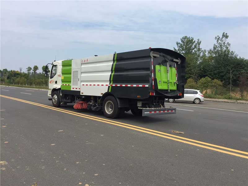 東風柳汽乘龍M3_16方洗掃車,副發油門、掃盤升降、掃盤旋轉等作業裝置可挑選配置“一鍵式”智能控制,操作更輕松、更省心。洗掃過的路面,有些濕潤,但并不產生積水,“見濕不見水”。具有作業裝置集中,噴嘴離地間距恒定,刷洗—沖洗—吸收污水等作業動作連續流暢,作業飛濺少、污水吸凈率高,清洗寬度大,清洗效率高等特點。副發動機帶車用離合器,啟動和停止時,離合器分離,延時后接洽。離心風機具有效率高,噪音低,性能曲線平坦,高效區寬廣等特點。不僅可以在室內運行,而且可以在室外運行,操作輕易輕易。洗掃車作業時先用邊刷將道牙處的垃圾向中間集中,再用高壓水進行清洗,然后由吸口將污水及垃圾吸到污水箱中。吸嘴內置長排噴桿,噴嘴離地間隔短、水流沖擊力大,能直接將污水送至吸口,可依據路面污染狀況,調整長排噴嘴對路面的沖刷視點,以到達滿足的清洗作用。