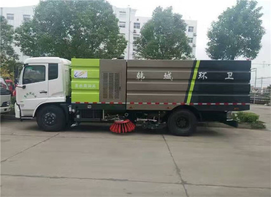 8)采用先掃,后沖刷,再吸收的工作方式,能將垃圾及污水一次清掃、沖刷、吸收干凈。路面作業后無塵土,無積水