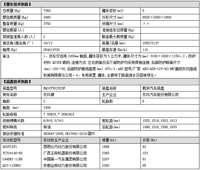 上裝配置:罐體容積約:5立方米,罐體鋼板采用Q235碳鋼鋼材,前沖后灑、側(cè)噴、平臺高炮、自流閥及消防接頭各1個、水管2根、標配億豐泵或金龍泵,后平臺加裝30米霧炮機組;其他標配。