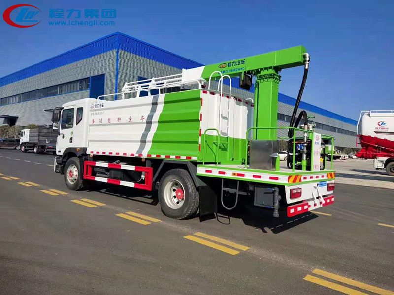 上裝配置:罐體容積:15立方,罐體內(nèi)部做防腐,帶加熱功能,前沖、后灑、側(cè)噴、高炮,抑塵噴灑桿(帶旋轉(zhuǎn)伸縮功能),噴灑桿離地3-4米 。后部平臺帶8KW副發(fā)電機組,罐體內(nèi)部加兩個1.5KW電動馬達(dá)(帶攪拌功能),平臺和噴灑桿藍(lán)色。遙控操作噴灑桿上下左右旋轉(zhuǎn),國內(nèi)知名品牌回轉(zhuǎn)支撐,大品牌油缸。