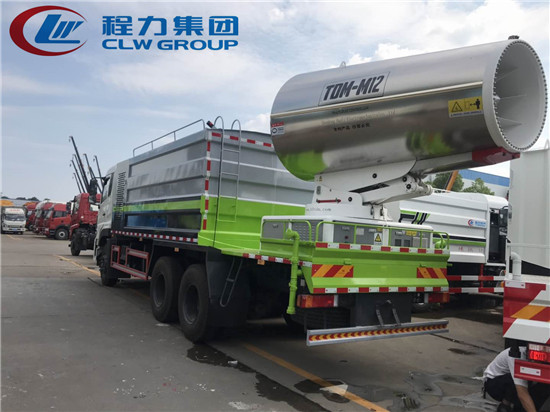 天龍抑塵車工作原理:采用配備的副發(fā)動機及發(fā)電系統(tǒng)向(霧炮)風機供電,利用超高風壓將高壓水泵噴出的水霧加壓噴射,以得到更遠距離的輻射范圍。霧炮采用遙控裝置,可自由調整噴射角度及旋轉方向,使用更加便捷。霧炮車同時也被廣泛應用于城市街道、港口碼頭、露天物料堆場、煤炭物流園區(qū)、露天礦山開采區(qū)、露天爆破粉塵、建筑施工拆遷、城市園林綠化、農業(yè)噴藥等項目或場所的除塵降溫、消毒防疫。東風天龍多功能抑塵車后部可選配河南萬豐牌WF-120型環(huán)保噴霧機組,實際水霧射程80-100米左右。